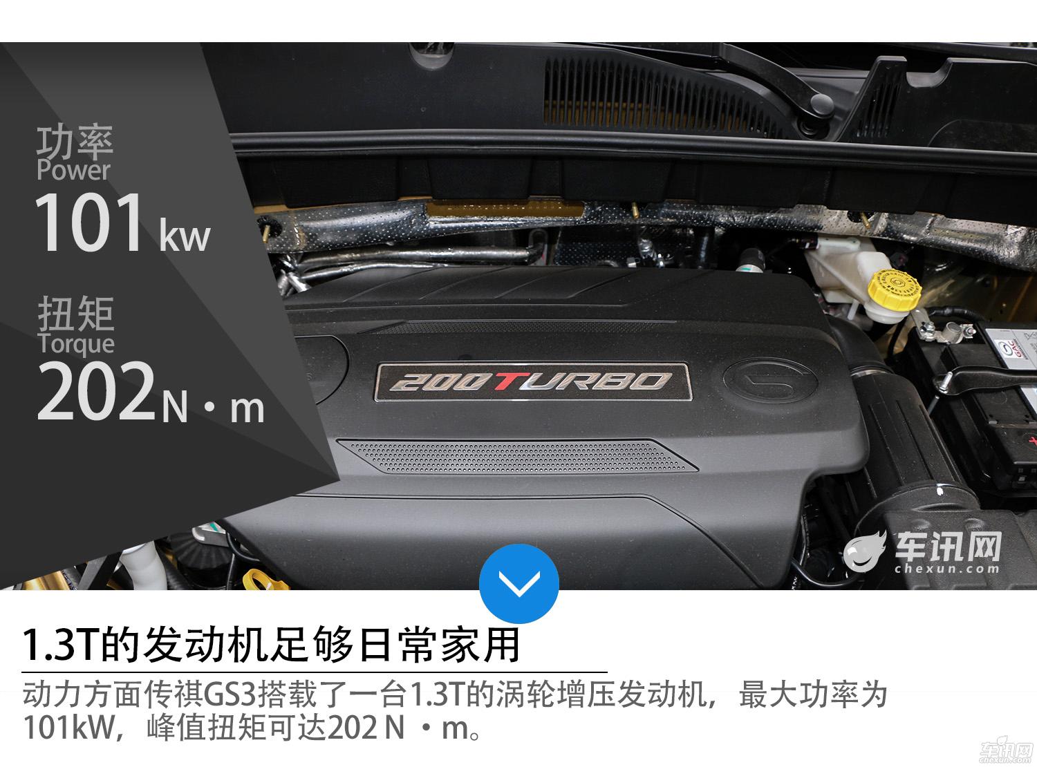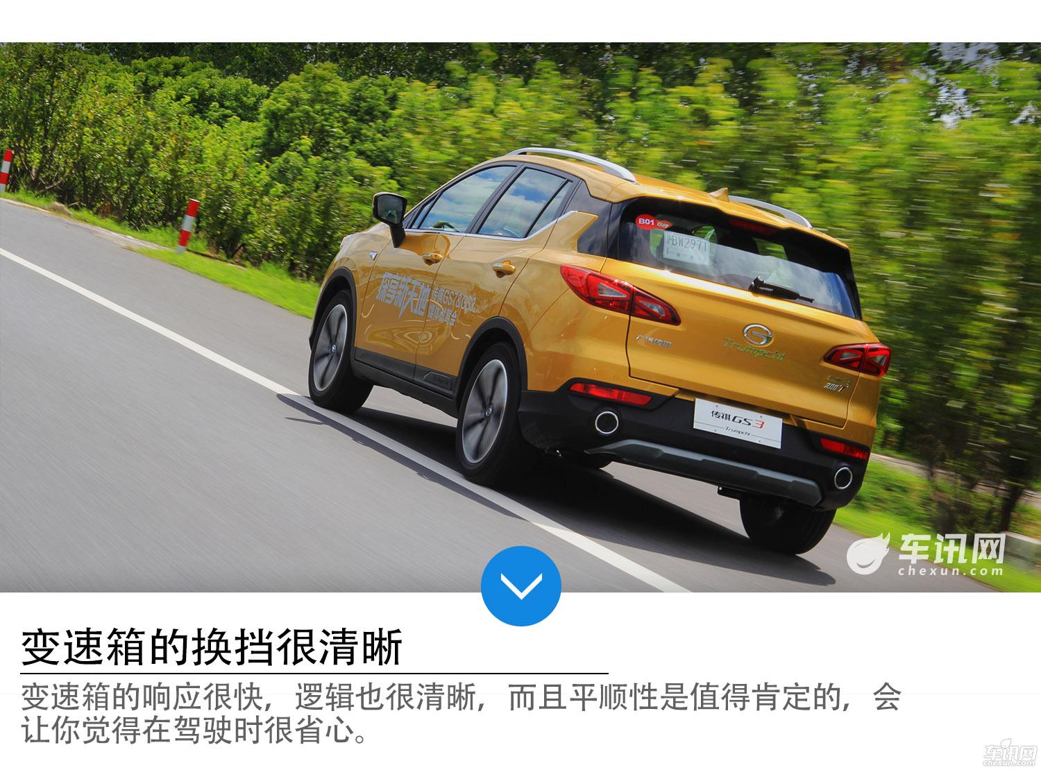 传祺GS3的这套动力系统,搭配的还是很恰当的,1.3T的涡轮增压发动机在这样一辆小型SUV上既能保证很好的经济性,也能完全满足日常驾驶时的动力需求,6速手自一体变速箱在日常驾驶时也很便利,同时切换到S挡也能稍微的放肆一下。