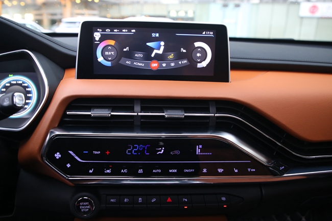 内饰方面,众泰T500更是采用了不同以往是全新设计,钱塘潮式搪塑仪表台设计全部采用了皮质包覆,左右贯穿的空调出风口把中控区域上下分开,同时上方还配备了向驾驶员微微倾斜的8.8英寸悬浮式触控屏,另外,下方的全触摸空调面板还巧妙的融入其中,银色的镀铬饰条与出风口饰条相得益彰,进一步提升了整车的质感。