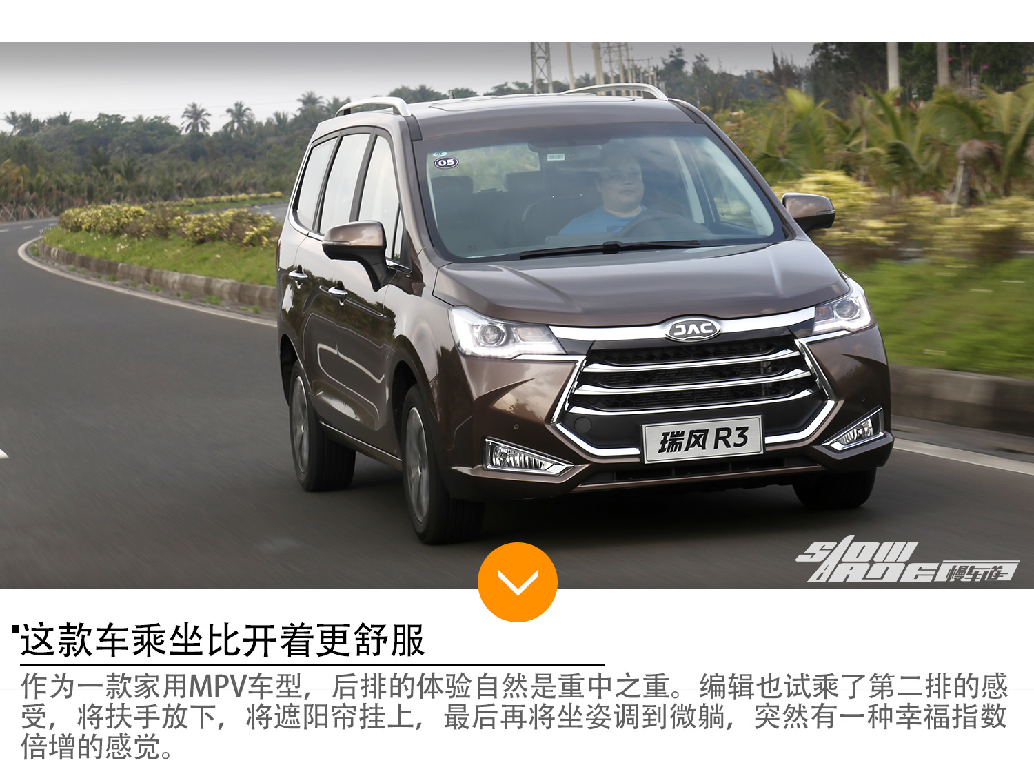 瑞风MPV有着16年的发展历程以及75万用户的口碑积淀,被誉为“MPV制造专家”。作为江淮旗下首款定位家用的MPV车型,瑞风R3不论是从外观、内饰、配置方面都有别于江淮的其他MPV车型,造型更加时尚、空间布局也更贴合家用。其实早在去年广州车展上,瑞风R3就已经在江淮展台上低调亮相,得到了不少细心的媒体和网友关注。