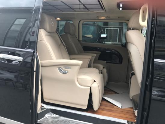 2018款奔驰商务车麦特斯维特斯进口威霆前后舱无隔断,电动侧滑门,闭合声音清脆,还可通过中控台按键多种方式自由操控,奔驰维特斯豪华商务房车为您度身定制VIP专属步入感。乘客舱前排首长级多功能按摩座椅带脚托,设计了滑轨,可自由电动移动和收缩,适应多种身高、体型的乘客,多种坐姿任君挑选,将舒适惬意延伸到车内每个角落。娱乐影音配备齐全,吸顶高清液晶电视,需要时可以往下翻,按钮一按,最新热点、时尚资讯随时掌握。