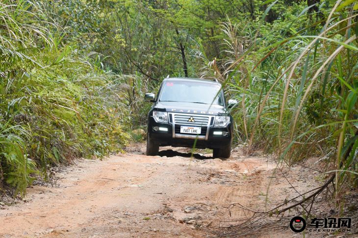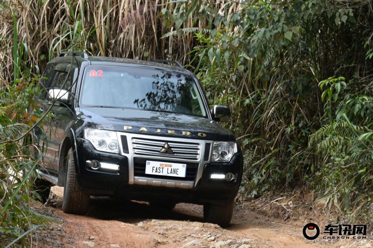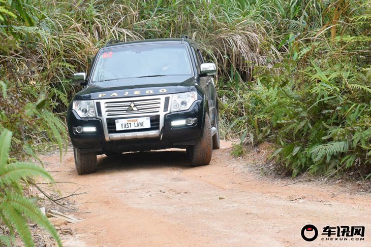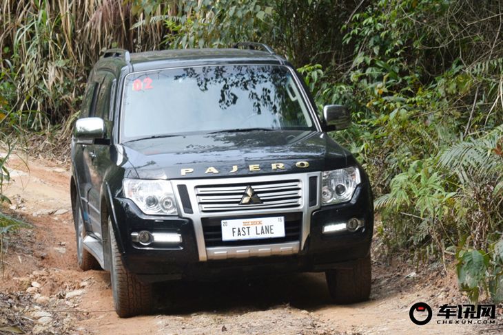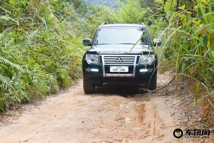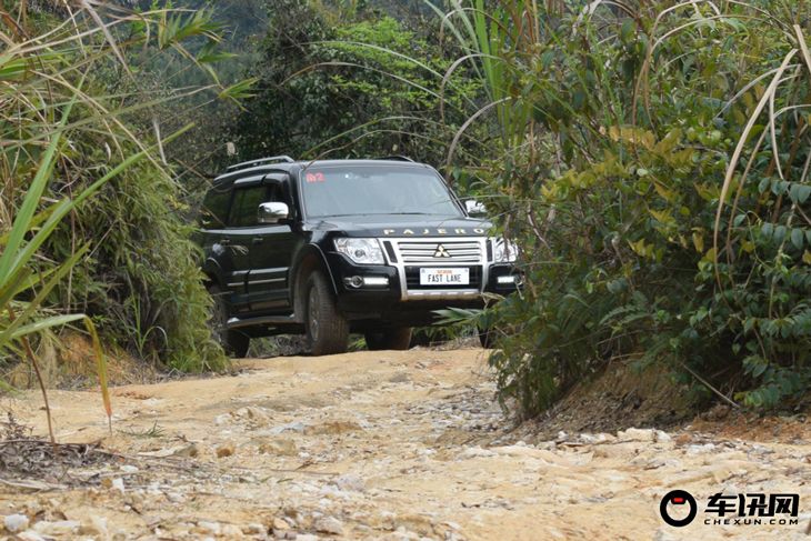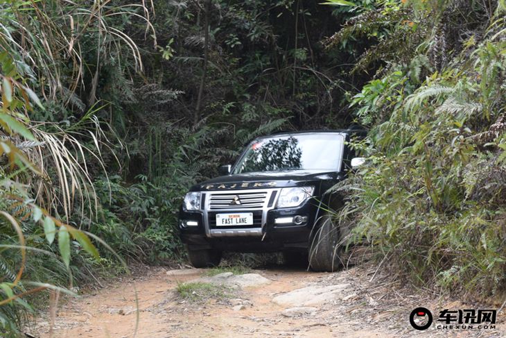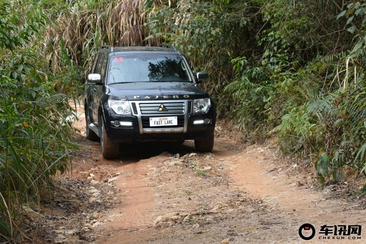 在试驾体验过程中,试驾路况主要是以山地泥路爬升为主,着实考验车辆的综合素质,特别是车辆的越野性能及四驱运行的状况!在不断爬升,路况变得越来越差的情况下,帕杰罗的第二代超选四驱并没有让我失望,以高速四驱模式很轻松的走完了挑战项目,甚至没有机会用到低速四驱,碰到一些比较大的坑洼,给大油门就过去了,“山猫” 的敏捷还是有点出乎我的意料。