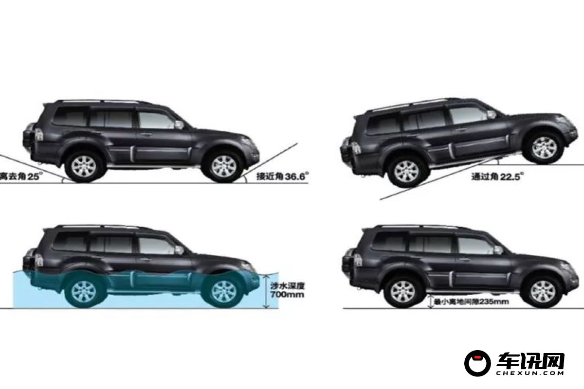 2019款帕杰罗依旧保持较为经典硬派的外观形象,除了情怀之外,主要是考虑越野性能,帕杰罗拥有高达235mm的离地间隙,辅以36.6°最大接近角和25°最大离去角,在通过崎岖的路况时能够提供良好的通过性,时下流行的“硬派越野”一词的说法,当然也有帕杰罗的一份功劳,也许复古就是不过时的潮流。