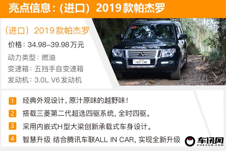 2019款帕杰罗似乎变得不再“硬气”,在底盘方面舍弃了非承载式车身,改用了内嵌式H型大梁承载式车身,而抗弯与抗扭刚性也有大幅提升,并且不会额外增加车身重量,高刚性车身结构大大增强在恶劣路况下的操控性与稳定性。这些改变,更多的是迎合当下消费趋势,空间变得更大,轴距变得更长,乘坐舒适性变得更好。庆幸的是,帕杰罗依然还是那辆“山猫”。