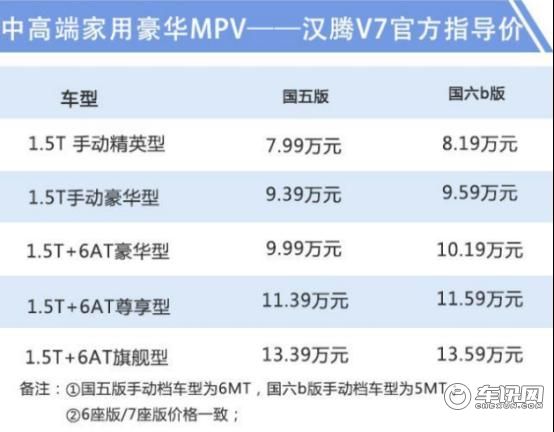 汉腾V7于7月23日上市,这款新车是汉腾旗下首款“中高端家庭MPV”,同时推出了国五版和国六b版车。