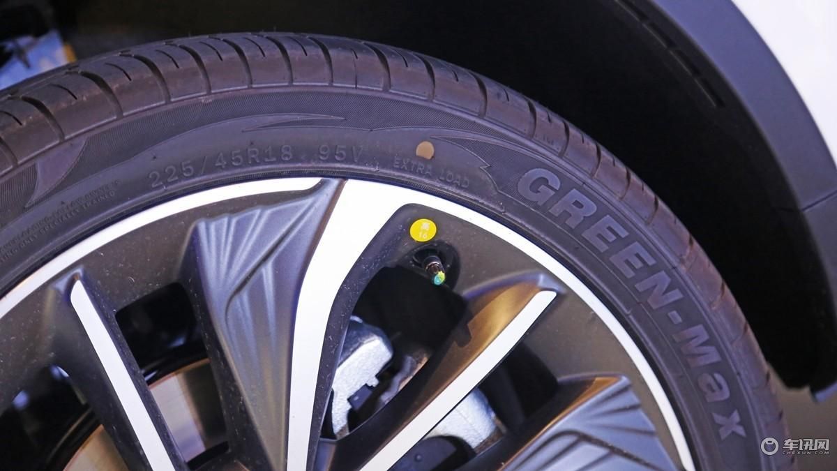 实拍车轮毂采用了与燃油版中配车型一致的设计样式,但细看其实已经更换了玲珑GREEN-MAX的225/45 R18主打静音和舒适性的轮胎。实际上同级别里能给到18寸轮毂的车型不算太多,这与帝豪GSe本身较低的车身高度搭配出了不错的运动感。