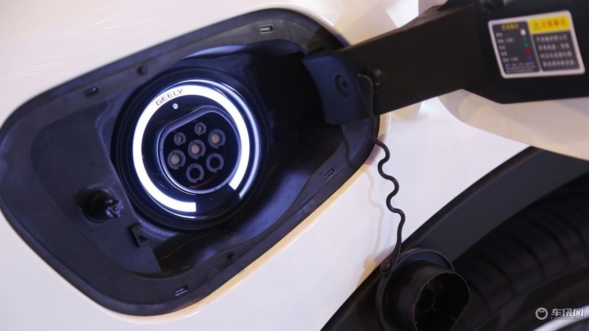 侧面部分帝豪GSe则与燃油版基本保持一致,而旁边也增加了GSe专属的新能源标识。右侧翼子板多出了一个快充的插头,而在此前加油口的位置则换成了慢充插口,两个插口都有LED灯带环绕,美观之余,在晚上充电也有不错的照明作用。通过左右侧后视镜下方的摄像头可以看到,实拍车型配备了360度全景影像,在复杂地形上能起到不错的辅助作用。