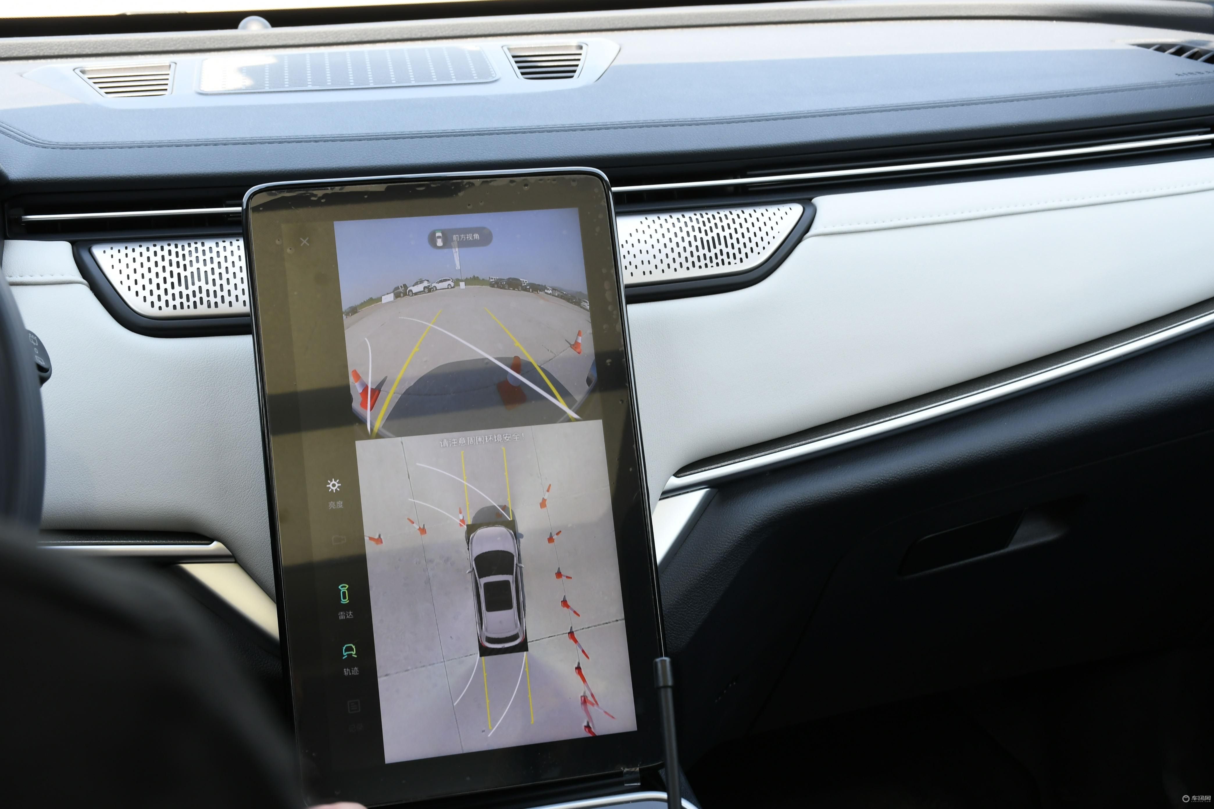 在360°全景影像的体验中,中控屏的显示也是十分清晰,伴随行驶轨迹,可使驾驶员时刻了解车周围的具体情况,从而避免发生剐蹭的几率。