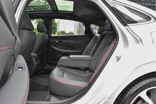 第十代索纳塔的长宽高分别为4955/1860/1445(1450)mm,轴距为2890mm。从实际体验来看,当前排调整至合适位置后,身高180cm的体验者坐进后排尚可获得两拳的腿部空间;而头部虽由于溜背的车身造型有所影响,但仍有4指的余量。以车内空间而言,新车的表现处于同级主流水平。