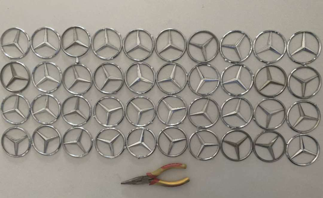 9月25日,浙江义乌市多名奔驰车主发现自己爱车的车头立标被人偷走,犯罪嫌疑人顾某很快落网,民警从他床铺下查获40余个奔驰车标。但其作案动机让人哭笑不得,顾某表示:“我想用车标打个银手镯。”熟悉奔驰车的同学都知道,奔驰的立标虽然银光闪闪,但并非纯银材质,而是由不锈钢材质打造。尽管如此,这一个立标的报价也在3000元左右了,40个车标的涉案价值超过12万,绝对够他吃几年牢饭了。