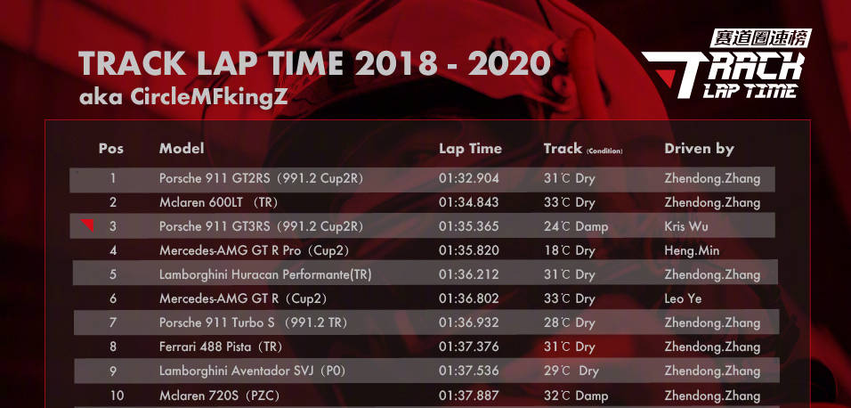 9月下旬,吴亦凡在浙赛作为“TrackLapTime赛道圈速榜”官方车手,按照官方统一测试标准进行了首次官方测试,并创造了GT3 RS的最佳圈速纪录,有效成绩1:35.365暂列总榜单第3位。这样的成绩,对于一位非职业车手来说,称得上相当不错的水平了。