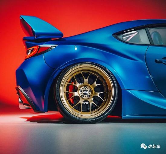 发动机盖进气、金色BBS轮毂搭配拉力蓝车漆、“口字型”STI风格大尾翼、粉色樱花标,这就是水平对置的荣耀!22B上标志性突出的翼子板线条,也完美重现在在这台BRZ身上。经典的原始线条,给BRZ注入了新的力量感。要是再装上雾灯罩,直接满分!