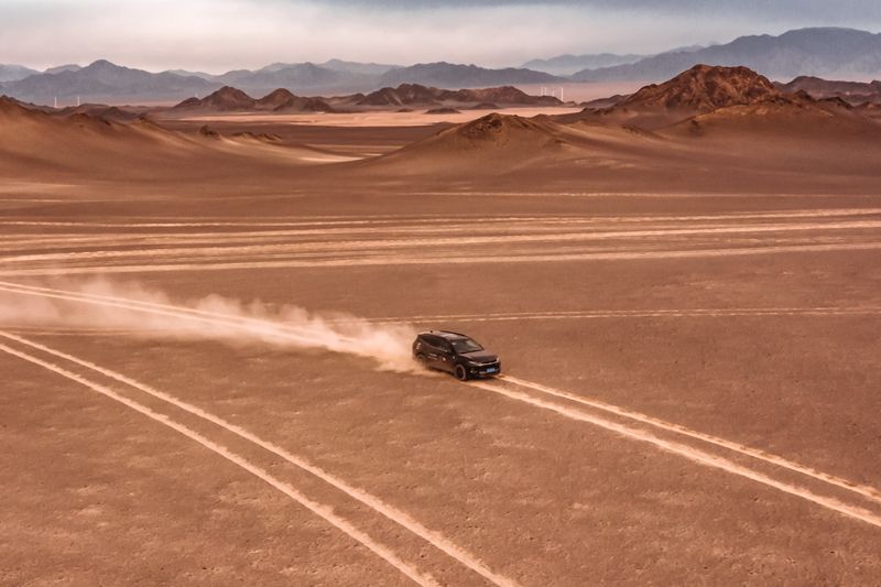在荒漠中的自然路上,我驾驶探界者走了100多公里,留下一个深刻印象:悬架真棒。地面虽有坎坷,但悬架的表现非常出色:一方面是减振效果很好,从而获得不错的舒适感;另一方面,悬架始终把车轮稳稳地“压”在地面上,从而让驾驶者感到很有信心。