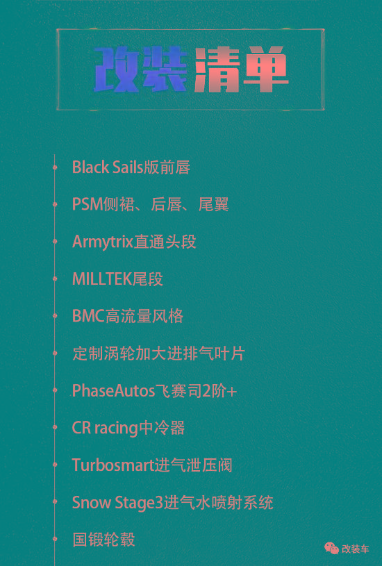 既然确定了要蹦直线,那就让双涡轮V8来得更猛烈一些吧。PhaseAutos飞赛司2阶+程序、定制涡轮加大进排气叶片,让轮上马力可以达到540匹。