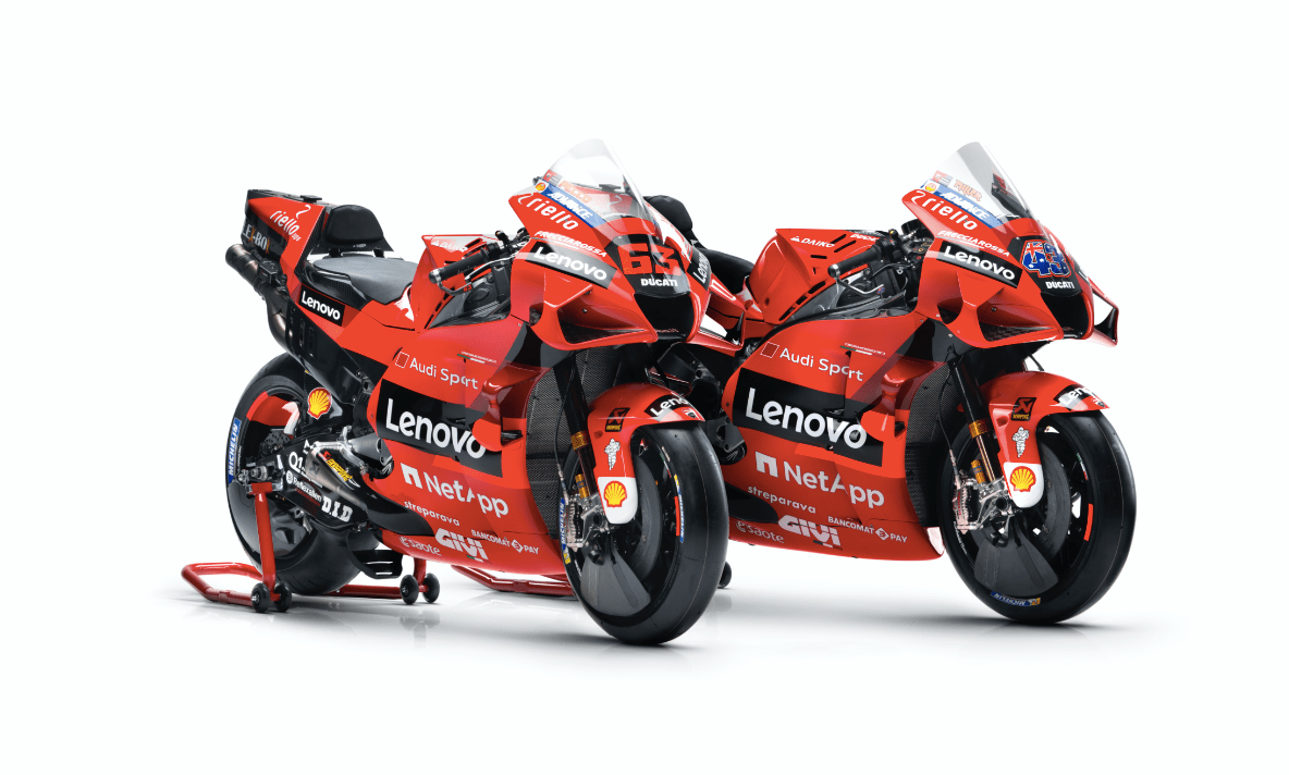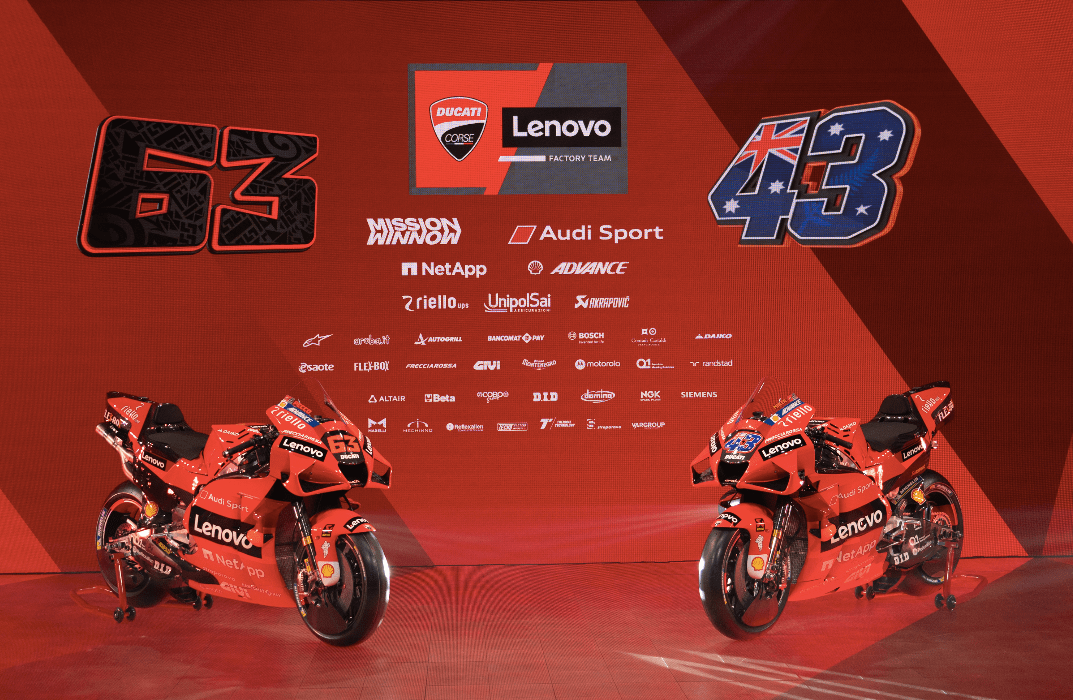 标志性的杜卡迪红色再降临,这两辆赛车在联想徽标中闪亮登场。联想做为意大利团队的冠名合作伙伴,是个人电脑,智能设备,数据中心,服务和软件解决方案的技术领导者。在过去的三个赛季中,该公司作为车队的技术合作伙伴,致力于开发与赛车相关的新战略和创新。根据新协议,联想将保证为杜卡迪官方赛队提供更大的支持,从今年起杜卡迪厂队将更名为杜卡迪联想队。