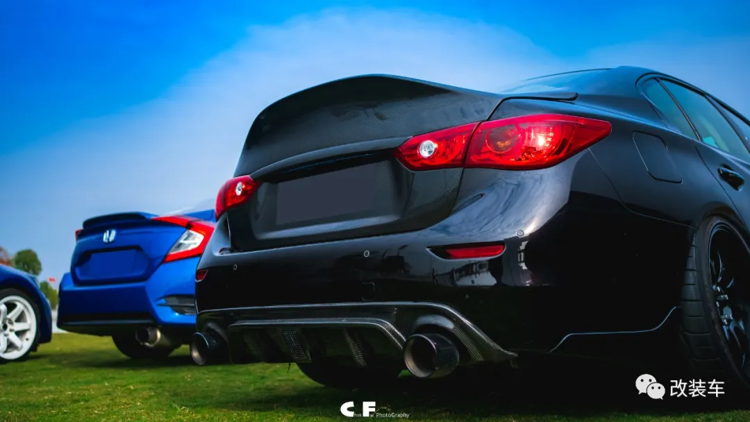 回到这辆英菲尼迪Q50S,这辆车是18年毕业以后家里给买的,由于之前走过2年改装路,所以车主在选车的时候会考虑车辆整体的“可改性”。当时决定买Q50S时,车主和销售还互相打了一波辅助:在试车的时候开2.0T加长版,购车的时候买3.7排量的版本(虽然车主父亲感觉到了3.7的后排变窄了)。随着两位好莱坞演员一顿操作后,这辆Q50S终于收入囊中。