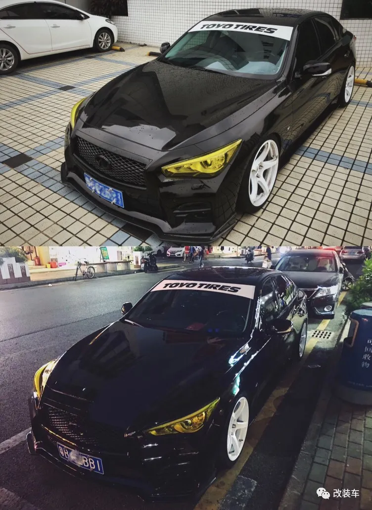 后来车主给这辆Q50S贴上了黄色的灯膜,感觉这样很有JDM的味道,但我怎么觉得这有点像丰田86呢?