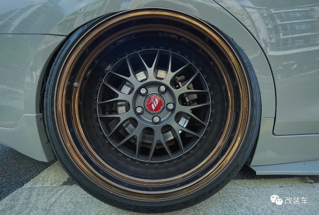 都说红黑色是绝配,黑色车身搭配红色Work D9R轮毂给整车增添了不少杀气,像是捕获猎物之后残留下来的血迹一般,非常吸引眼球。