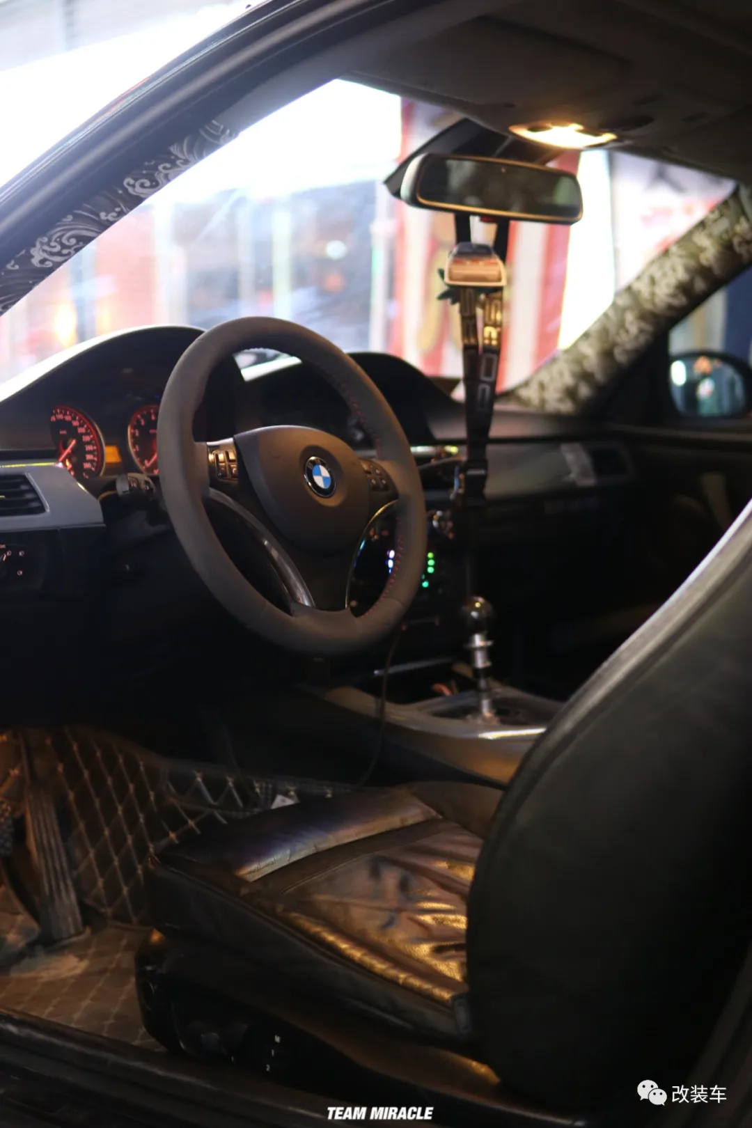 “挡杆E92找不到好看的,我拿游标卡尺读了一下数据,发现高尔夫的挡杆竟然合适,就买回来自己改一下装上去了。盖板也不好看,自己又找人做了一块亚克力板。”