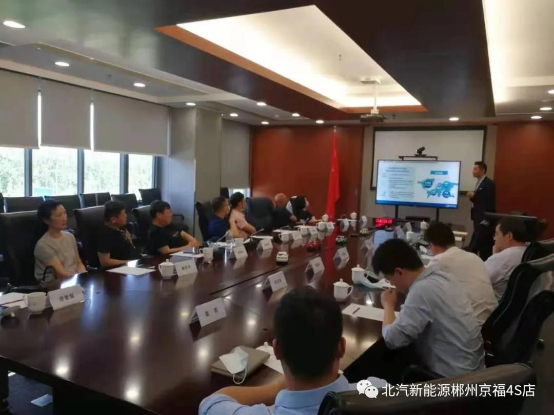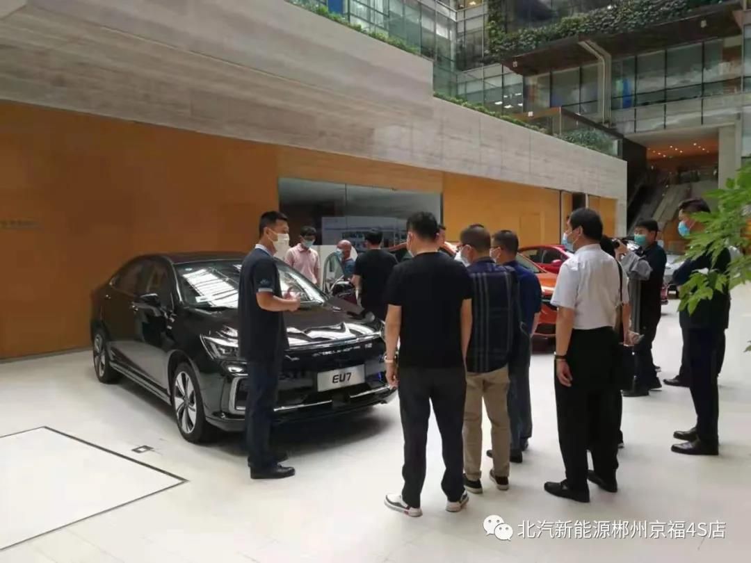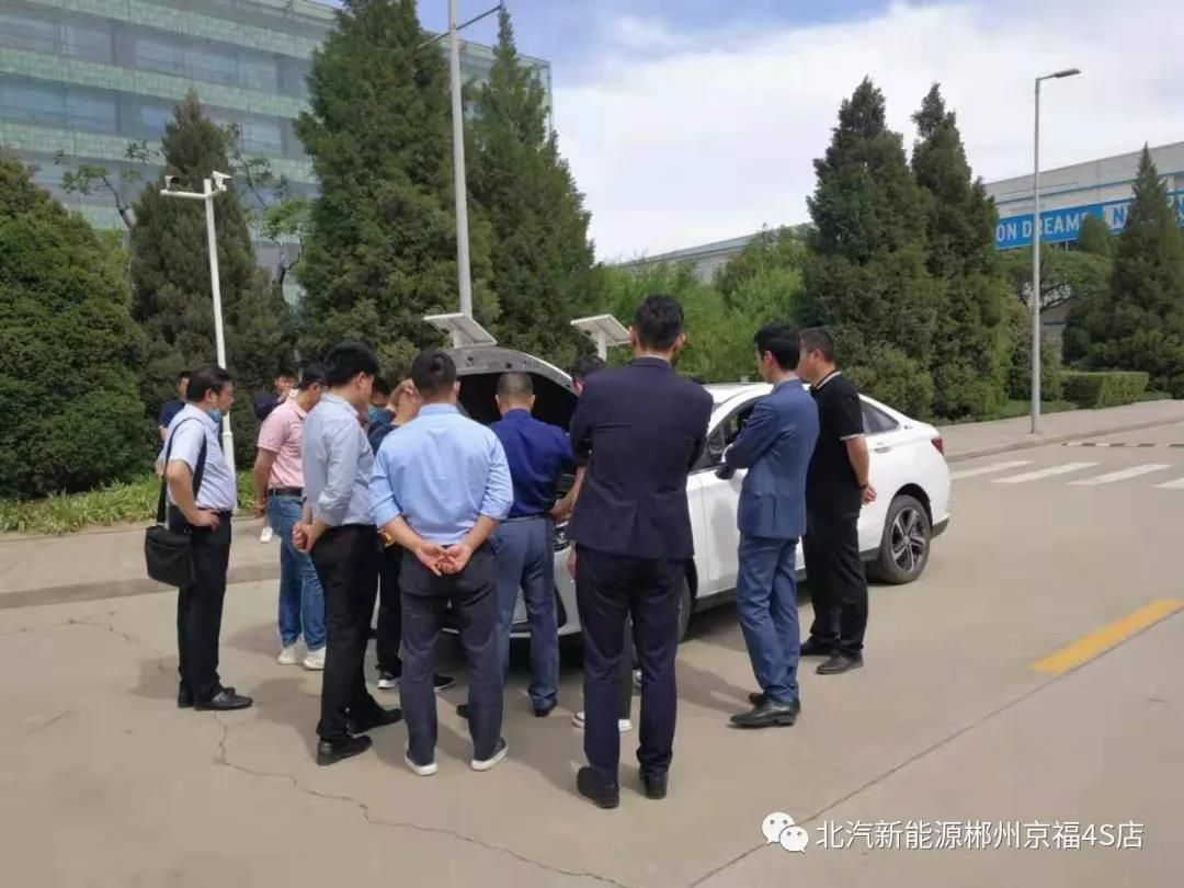 为了响应市交通运输局优先推广纯电动新能源的号召,郴州京福店及北汽厂家于5月17日邀请郴州市交通局张广军,郴州市交通局熊威智,郴州市道路交通营运服务中心 陈绪林,郴州汽车运输集团有限公司陈建斌,郴州市福城出租汽车有限责任公司 刘焕新,腾龙出租汽车有限责任公司蒋汉武,郴州市兆达道路运输有限公司易玲芳,郴州市恒通出租汽车有限责任公司 费珍,郴州市三维出租车有限公司廖爱国参加北京蓝谷交流会,由各厂家领导负责人及郴州京福新能源汽车服务有限公司总经理彭晓军,郴州京福新能源汽车服务有限公司副总经理罗棣华陪同,其目的将推广我司的换电产品,利用换电差异化优势争取市场,特邀各位领导考察。
