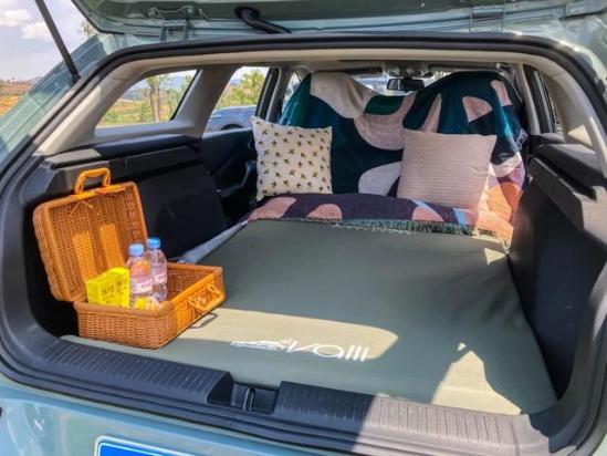 空间方面的重点在后排,当后排向前翻折座垫配合靠背放倒后,可以得到一个超大且全平的后备箱空间,配合上宝骏联合0压床垫制造商MLILY梦百合共同打造首款0压定制床垫,可以获得一个能容纳容纳2-3人平躺或侧卧休息的大床。