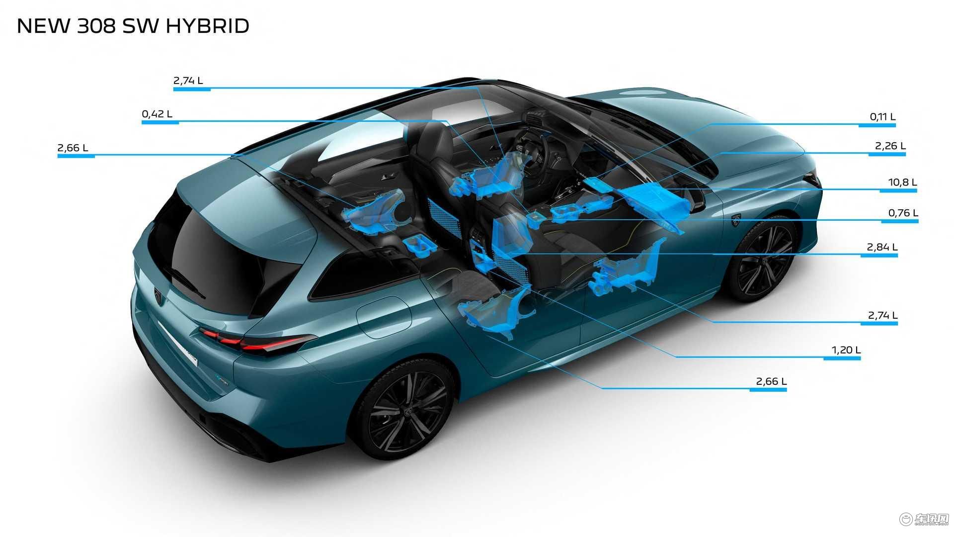 与当前在售的T92版本相比,全新308SW的后悬部分增加了几厘米长度,这也使得新车拥有更大的后备厢容积——ICE燃油版标准状态为608L(插混车为548L),放倒后排座能扩展至1634L(插混车为1574L)。