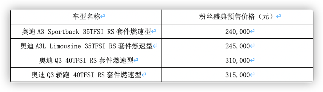 除此之外,全新奥迪Q2L领衔的奥迪新生代车型家族更是重头戏,奥迪A3家族RS套件燃速型、奥迪Q3家族RS套件燃速型正式开启预售,并上线12辆早鸟抢先版。