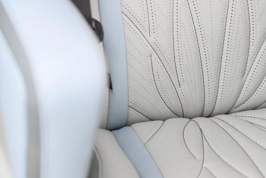 打开车门的一瞬间,浓烈的精致贵气扑面而来,富丽堂皇的内装近在眼前,采用豪车必备的真皮材质,蓝白交杂让人觉得清新高雅。