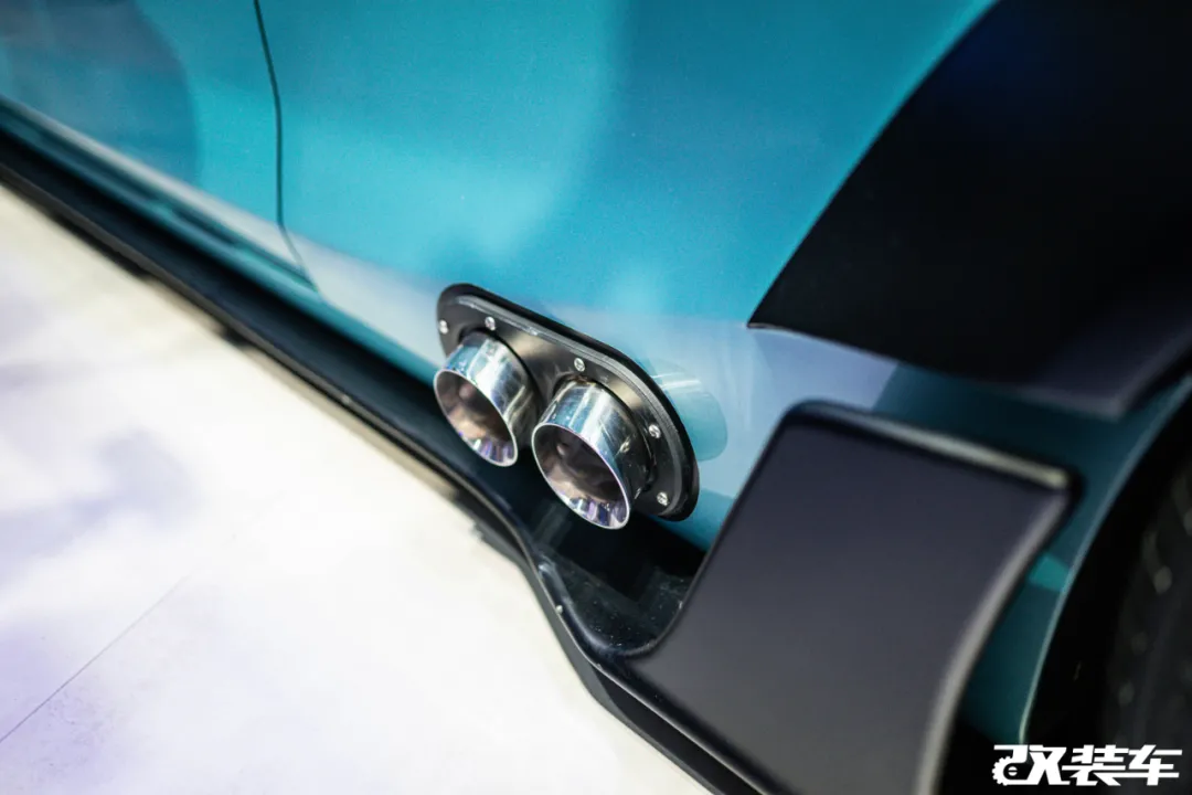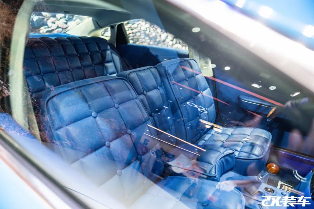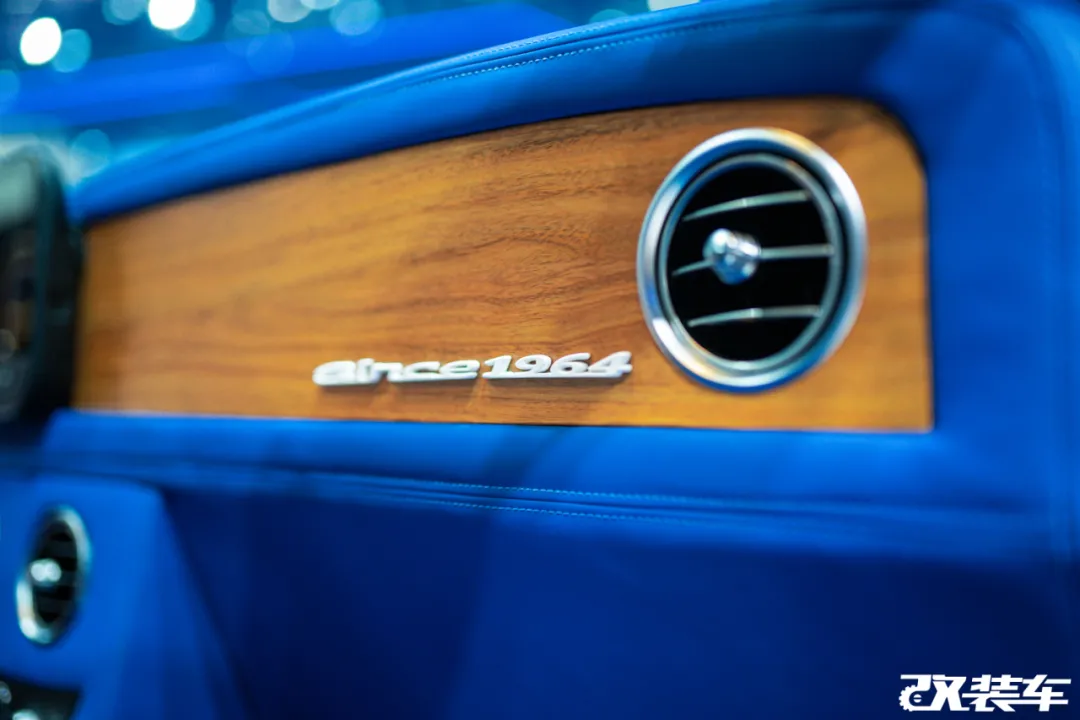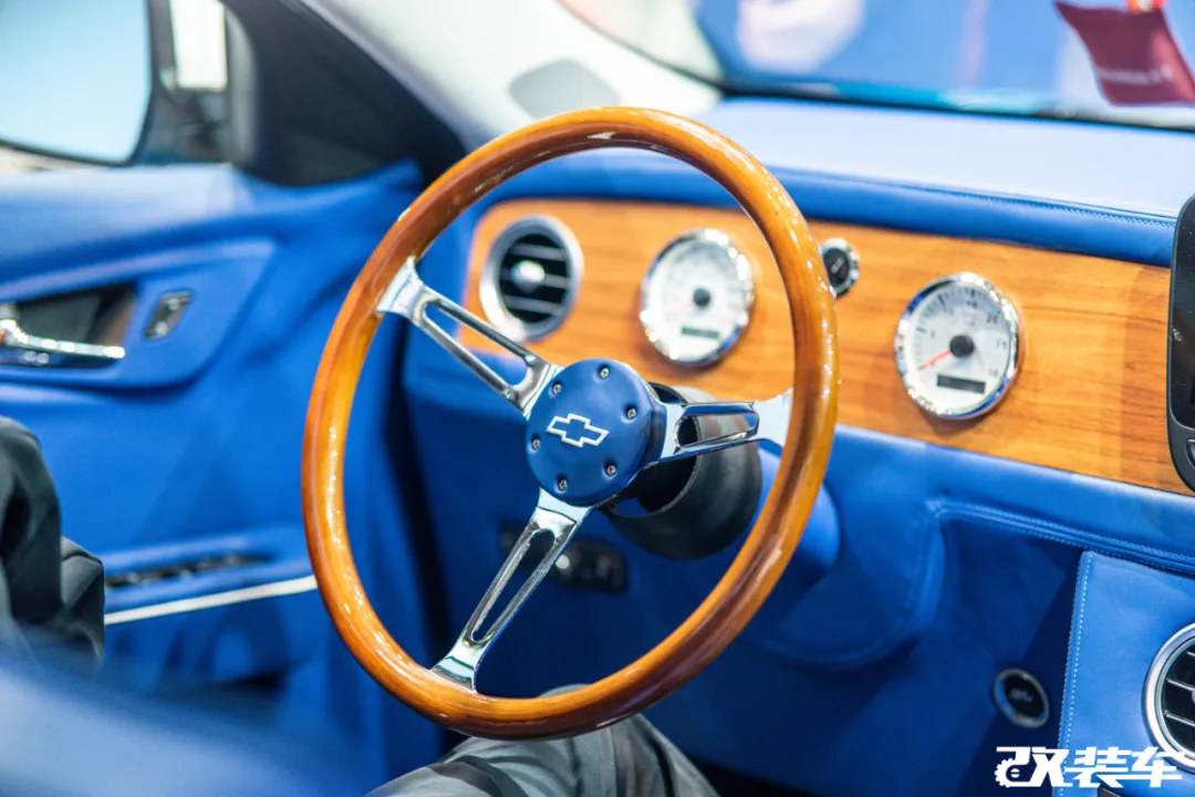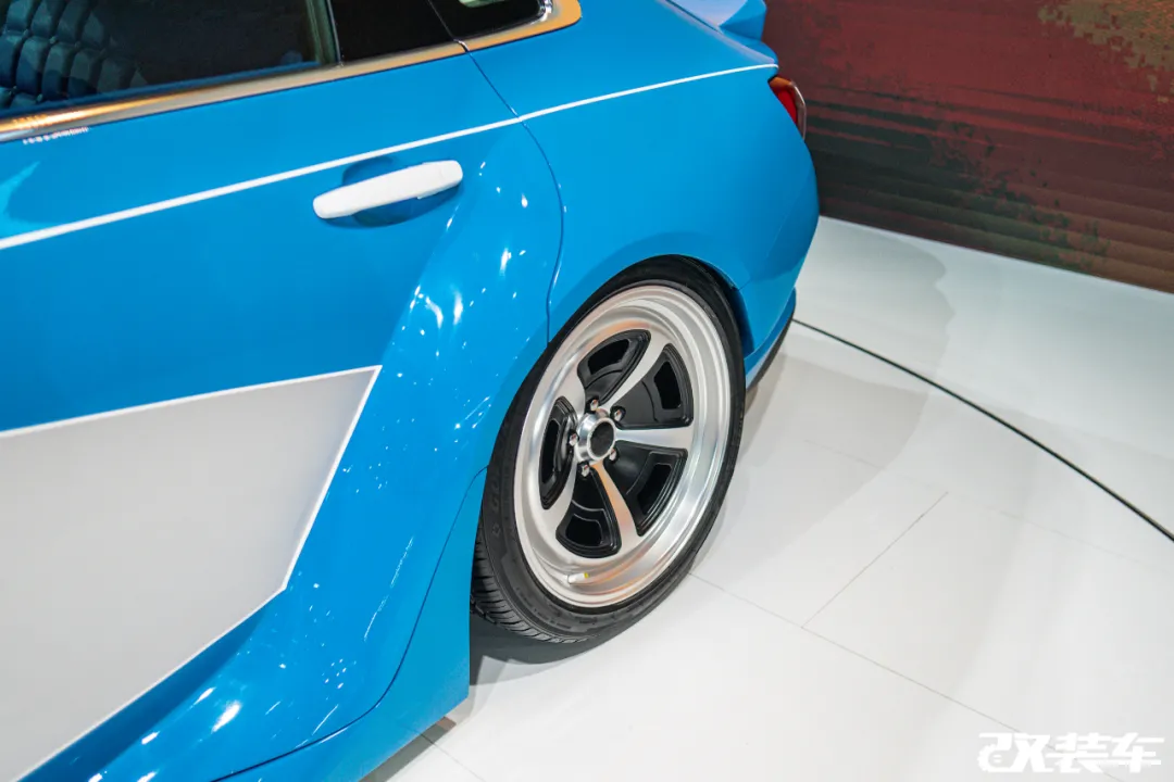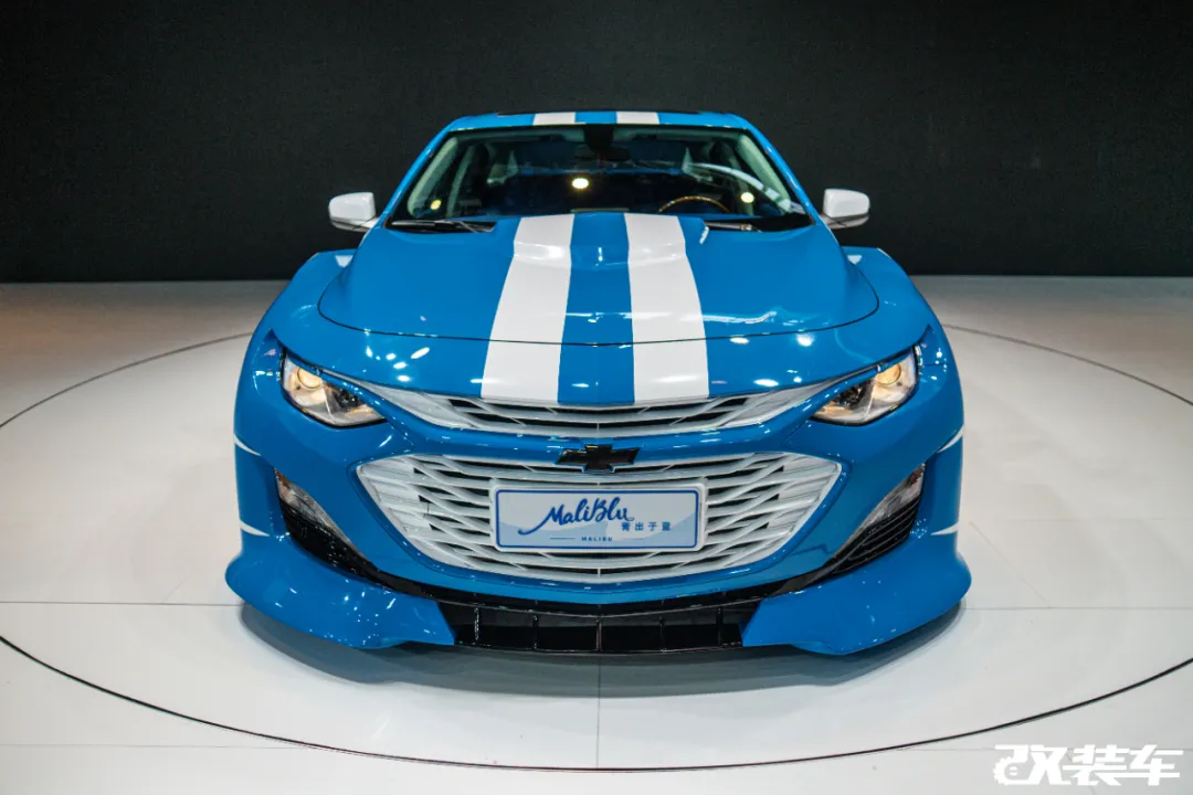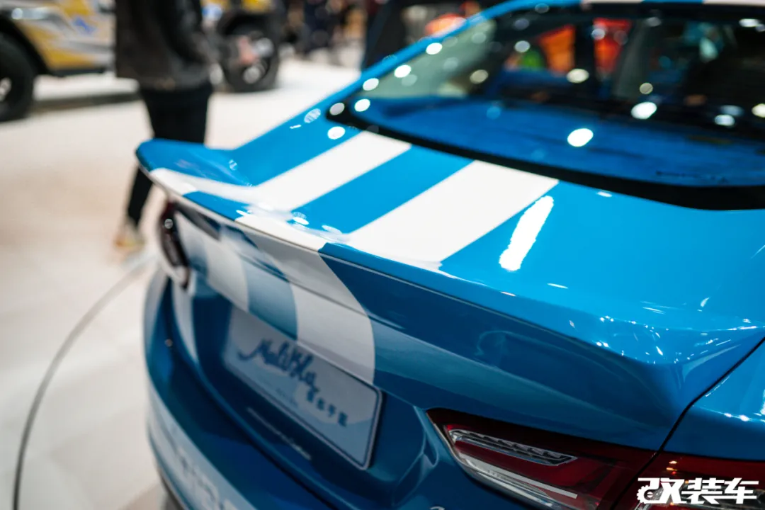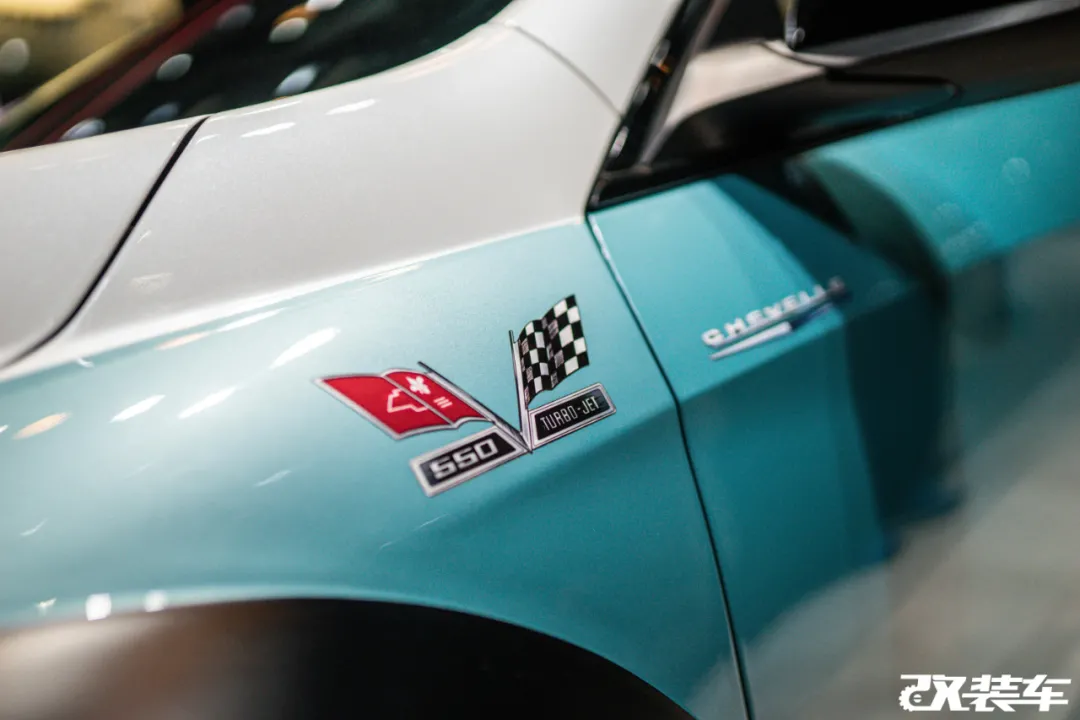 拥有全场整体性最好的宽体套件,整体蓝白配色简洁而素雅,在细节方面,轮圈、赛车条纹、车侧拉花、定制车标等心思无不是在致敬经典的初代科尔维特。取名——青出于蓝,也点明了雪佛兰不断超越自我的进取精神。