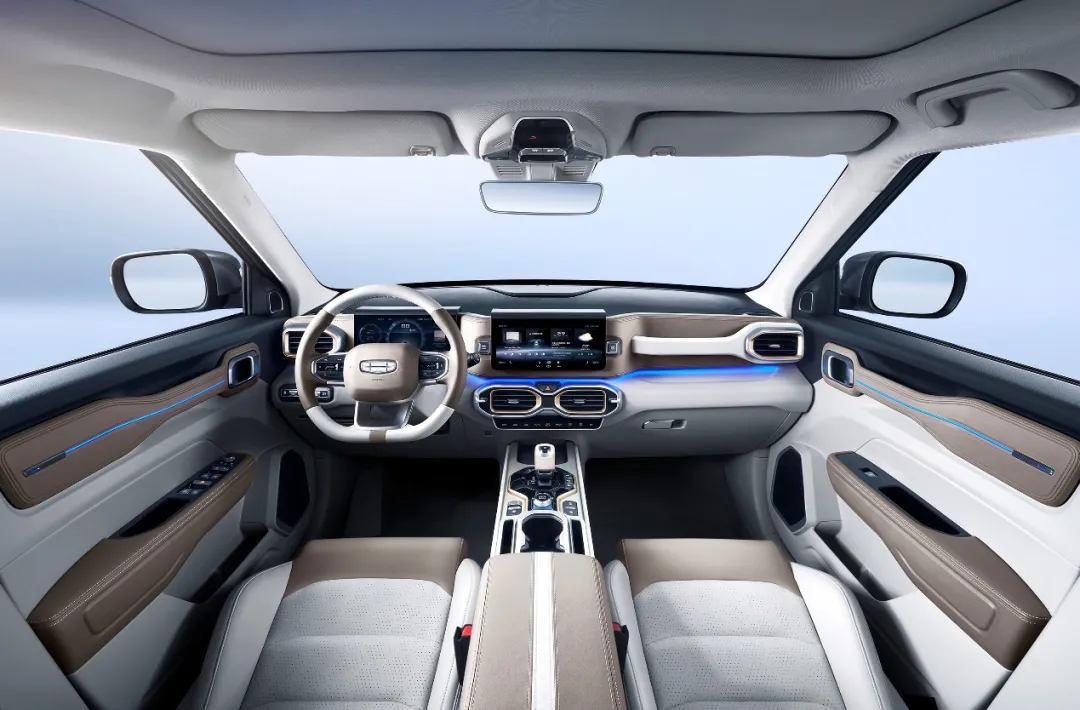 始于颜值,忠于内涵,ICON-青鸢限量款的内饰采用了银河星舰白棕拼色,深灰混纺面料与浅灰PVC的拼接设计,营造出温暖清爽的舒适感。座椅、中控、方向盘、门板拉手等处大面积的棕色皮质包覆,在视觉上更加大气,搭配会呼吸的72色氛围灯,提升了整体的浪漫氛围。