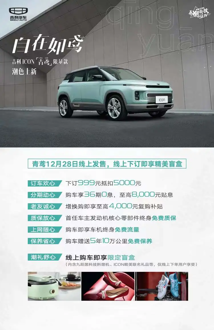 一眼倾心,一直是ICON与用户缘分的起始,吸睛的潮流外观加上出色的产品力,让ICON带给用户更长久的陪伴。随着ICON-青鸢限量款的推出,未来吉利ICON还将持续坚持潮流主张,为用户提供更多元化、个性化的选择,为用户打造更加自在、愉悦的出行体验。