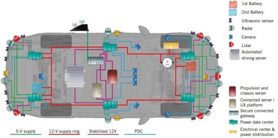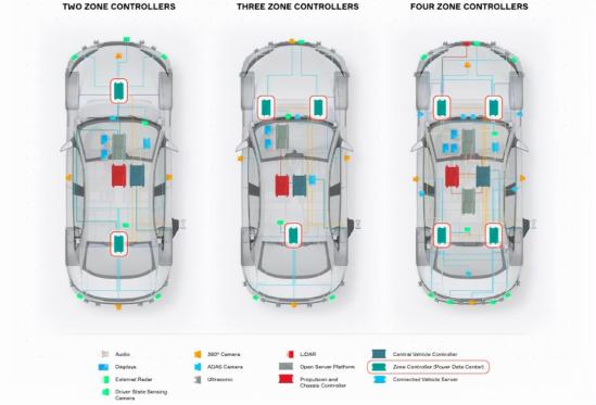 这里的PDC就可以看作是域控制器。我们所熟知的特斯拉Model 3就是把车内大量的ECU工作集中到了左车身、有车身和中央车身三个控制器当中。此次安波福提供了一个更简洁的方案,直接集中到了前车身与后车身两个PDC之中。不过这个只是他们提供的比较极致的解决方案之一,他们的大多数客户都更倾向于选择三个PDC来分担工作,虽然这样做的话车辆的成本会稍高一些。