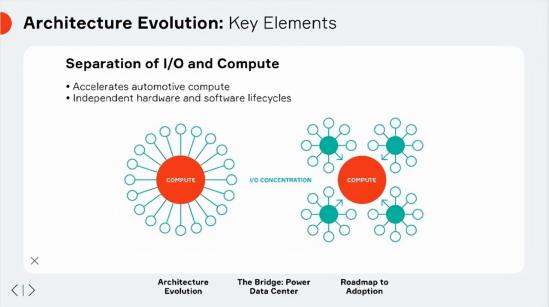 在安波福此次提供的方案中,就已经显示出了这样的趋势。此次展出的CVC还负责管理时间同步,这一功能决定了车内多个系统能否有效地协同工作。通过在CVC中定义网络,可去除为其他设备配置的昂贵的路由器硬件,从而进一步降低整车成本。以管理转向灯为例,当某个应用程序需要打开左侧灯时,CVC选择特定的区域控制器进行通信以发送闪烁信号,同时管理着所有区域控制器的计时情况,并且将这些细节隔离在应用程序之外。而在混合性网络中,这种方式可确保雷达数据等更关键的流量得到及时传输。