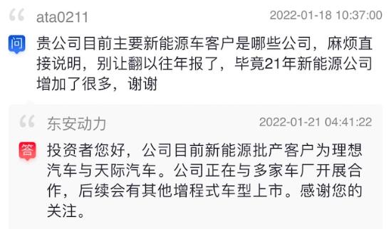 于是翻开东安动力(600178)的投资者问答专栏,发现了一个秘密: