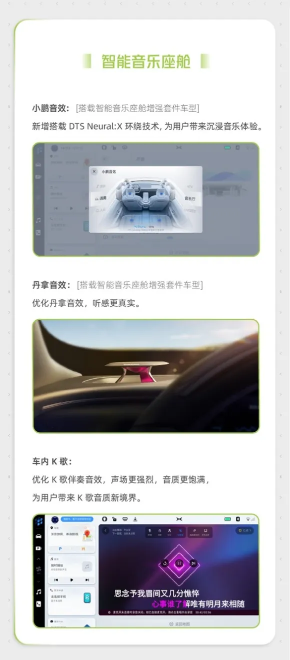除此之外,本次升级也将针对XPILOT 2.5的智能泊车辅助系统、智能安全系统进行优化,并对全场景语音的连续对话时间设置与智能音乐座舱整体效果进行优化,持续提升用户的使用体验。领先从未止步,本次OTA 2.7.0让P7再次在智能层面成为量产车中的“智能轿跑第一车”,更多惊喜,等待用户们去一一发现。
