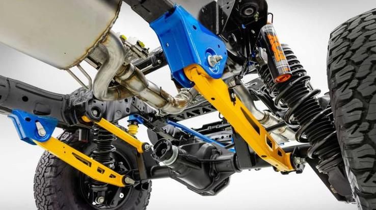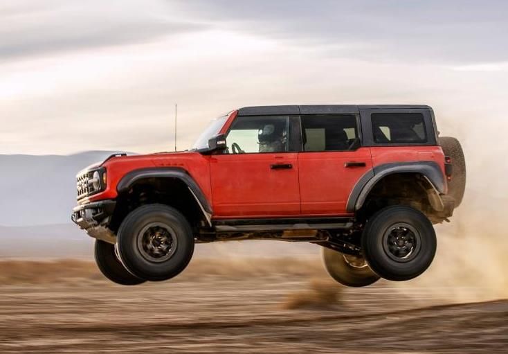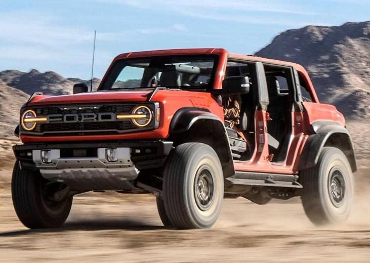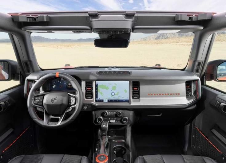 侧面搭配宽大的轮眉,并配有37英寸轮圈,让其展现的格外大气。据了解,新车以Bronco为基础,增加悬架行程和轮距宽度,从而在高速沙漠奔跑中保持操控稳定性。尾部依旧是家族式的设计风貌,据悉,新车的最小离地间隙为333mm,接近角47.2度,离去角40.5度,跨越角为30.8度,车身宽度比普通版车型宽近25厘米,还带有可拆卸的踏脚板,可提高岩石爬行能力。