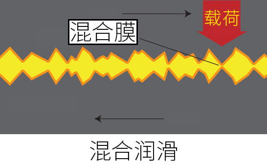 至于机油润滑中的第三大类--混合润滑,则是一种介于边界润滑和流动润滑之间的润滑方式。混合润滑的油膜不像边界润滑那么薄,但也不像流动润滑那样能做到完全隔绝,所以混合润滑只能覆盖微观层面金属表面的大部分凹凸,而无法避免金属与金属之间零星锋利小凸起所产生的摩擦和磨损。
