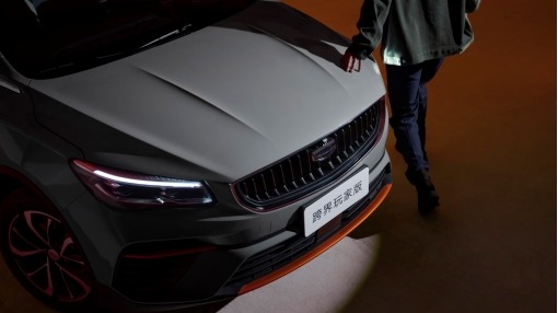 从图片来看,帝豪S跨界玩家版在整体造型上融入了更多年轻人喜爱的时尚设计元素,比如:外观上将新增全新的“摩登灰”车色,并在前格栅和侧裙边等细节加入亮眼的橙色饰条,以大胆有趣的灰橙撞色设计带来灵动吸睛的视觉冲击力;再搭配17吋漩涡星流亮面轮毂,流光炫影,动感十足,牢牢抓住Z世代年轻用户的目光。