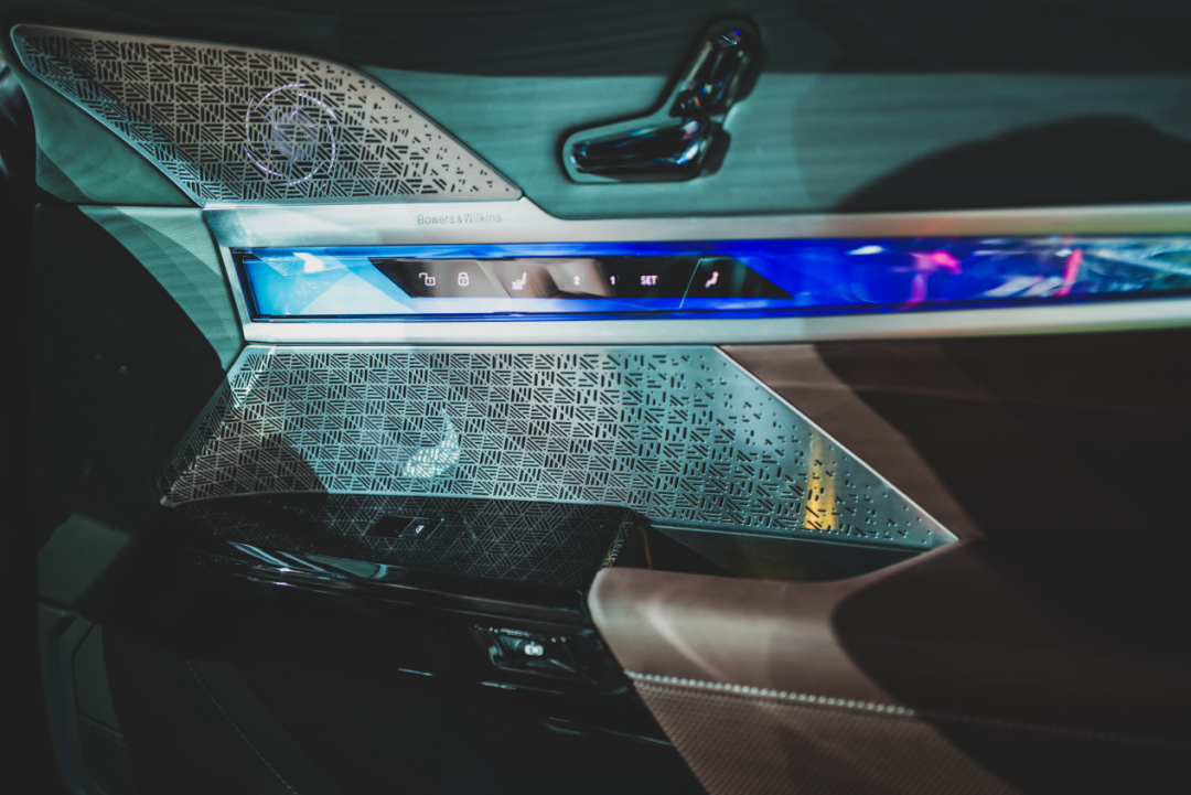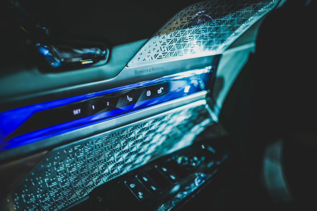如果说宝马从G系列底盘的产品开始,在内饰设计的豪华感方面有了稳步提升,到了全新BMW 7系这里则变成了跨越式的发展。进入车内后,所有的目光都会聚焦于BMW环抱式交互光带上,其功能不仅集触摸式用户界面、数字显示、环境氛围灯及装饰于一体,并可根据不同主题模式变幻而呈现出不同颜色,视觉效果堪称梦幻。仪表板上的隐藏式空调出风口与BMW环抱式交互光带融为一体,隐而不现。装备有按键式电子门锁以及精致感十足的宝华韦健4D钻石环绕音响系统的车门还具有自动开合功能,又进一步提升了全新BMW 7系的高级尊贵感。
