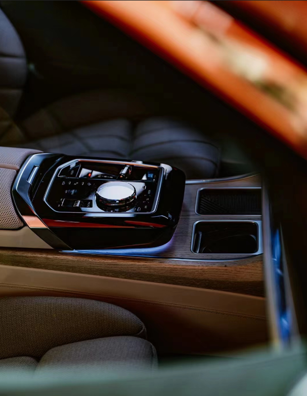 车辆内部,i7搭载了全新BMWiDrive和BMW操作系统8.0,使用12.3英寸+14.9英寸双联屏一体式悬浮屏幕,与贯穿整个前排仪表板和车门的BMW环抱式交互光带相融合。
