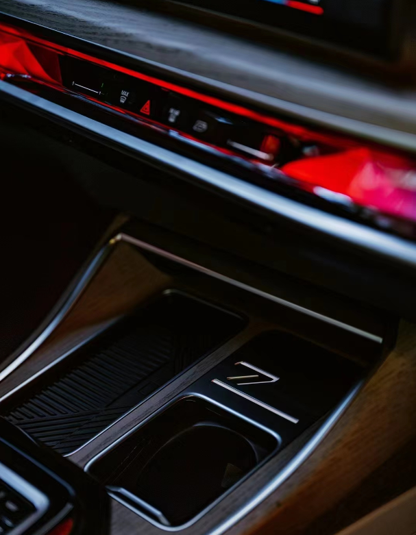 遵循“ShyTech”隐形科技原则,全车物理按键的数量大幅减少,仪表板上的隐藏式出风口与其融为一体,环抱式交互光带集环境氛围灯、动态美学艺术与功能按键于一体,结合呼吸式光球周身的金色光晕使整个驾驶舱极具科技感与豪华感。
