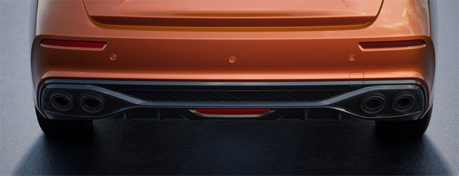 尾部方面,极具战斗气息。配备熏黑双边四出排气口造型,好似大型飞机强劲的四发引擎,造型锋锐动感,给用户赛道级体验,看一眼就能激发无限的驾驶热情。