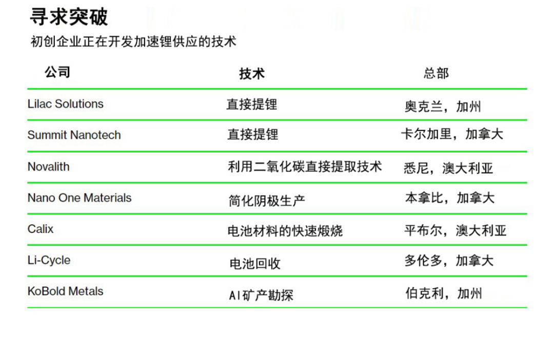 这也催生了一些初创企业。许多企业正在追求直接提锂(direct lithium extraction,DLE),这是一种以化学方式捕获锂化合物的方法,将加快生产速度。