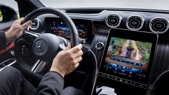 还新增了4.5度后轮转向和新一代4MATIC四轮驱动系统,还可通过屏幕获取倾斜度、坡度、地形高度、地理坐标和指南针,甚至是前轮和后轮的转向角等信息。