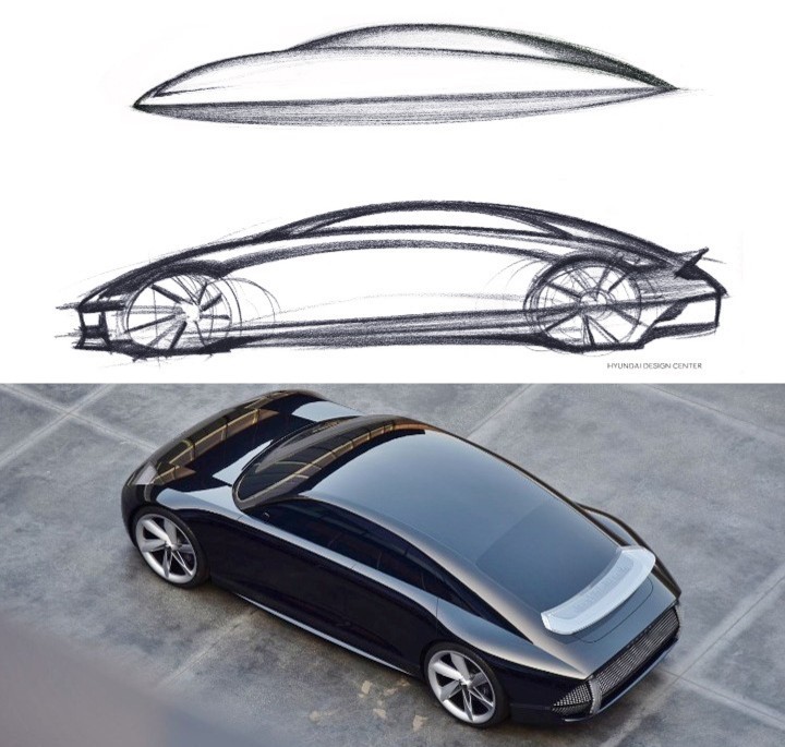 IONIQ 6 锁定中型电动轿车市场,主要竞品为特斯拉 Model 3,车尾配有大面积 LED 排列而成的鸭尾扰流设计,搭配黑色烤漆、笔直线条纹理,延续概念车 Prophecy 元素,透过流线、运动化的外型,提供不同以往传统的新世代产品设计。