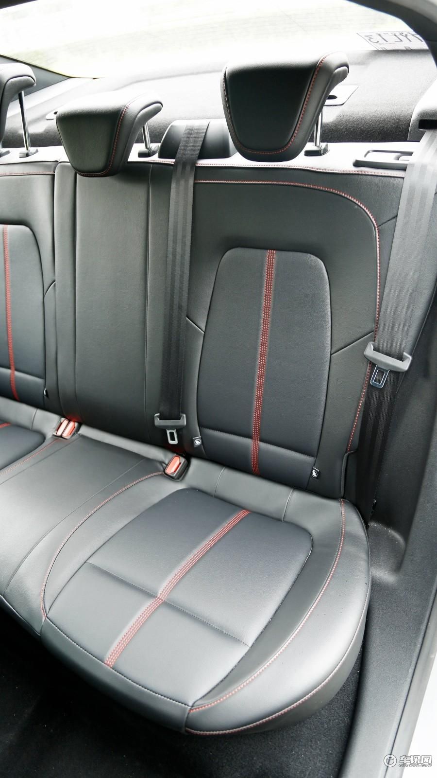 1.8米的车宽带来了较为充裕的横向乘坐空间,黑色内饰搭配红色缝线的内饰很“race”,而黑色顶才是区分是否为买菜车的因素之一。