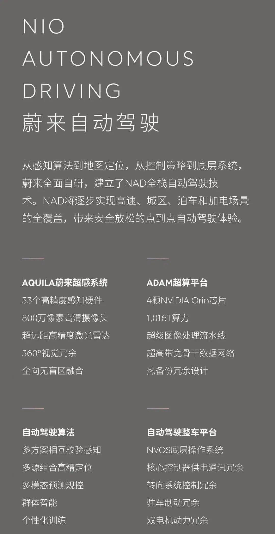 正所谓羊毛出在羊身上,即便它标配,你花的钱里面也有一部分是用来买这硬件的,而对比所谓的厚道与否,最终可能还是要落到横向的价格对比才能得出结论。以蔚来eT5为例,32.8万元的车,除了全套的NAD硬件之外,还给了你那么多的配置和那么高的性能,我自然是对付费使用NAD没什么怨言了。