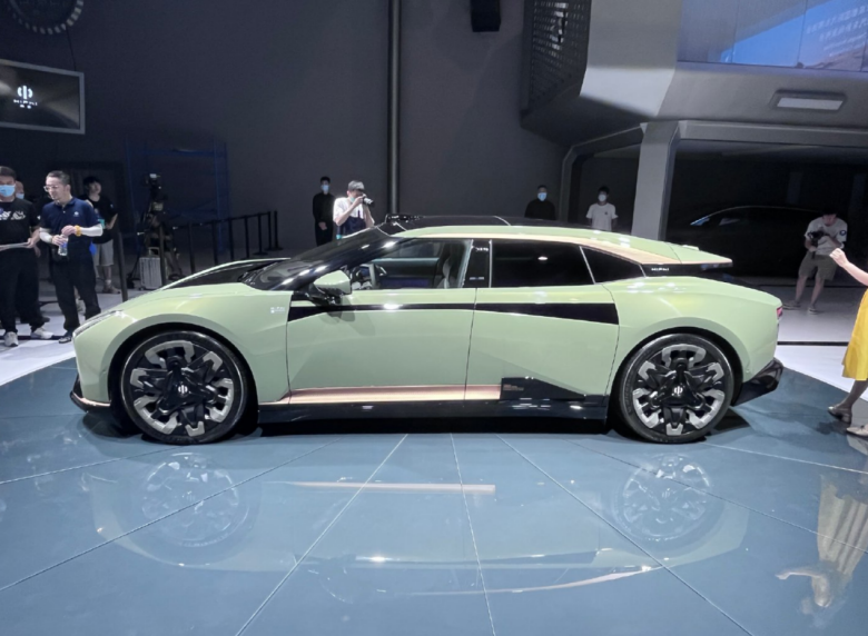 外观设计自然就是高合家族化风格了,溜背的造型,掀背的风格,使其更像是一台猎装轿跑车。车门开启方式,采用大劳同款的对开门设计,但碍于轿车的姿态,头顶上的飞翼门,自然是不会存在的。