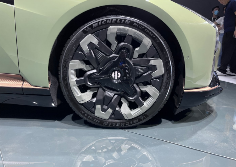 另外,作为量产版本,HiPhi Z后视镜还是需要符合国内法规,采用了传统风格,这套机甲风格的22寸大脚,也是需要选装的,一个5000。