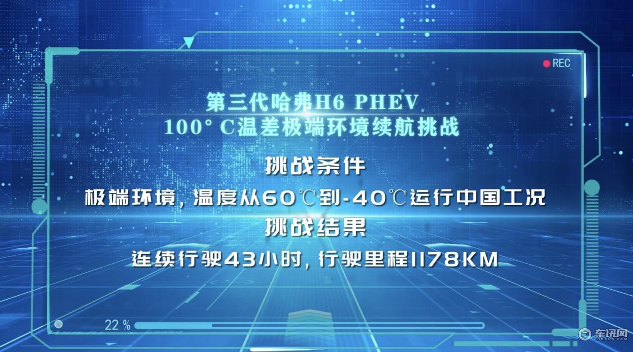 其中,哈弗H6超级混动DHT的PHEV车型在“温差100度续航挑战”试验中,经过43小时的不间断行驶,最终续航里程为1178公里,用最科学严谨的方式直观展现了新车的续航能力和可靠性,解决用户的里程焦虑问题。