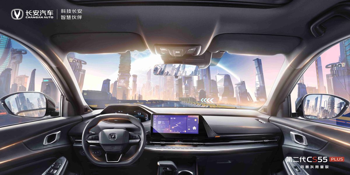 『时空竞速』中,搭载蓝鲸新一代NE1.5T高压直喷发动机与蓝鲸7速湿式双离合变速器的长安第二代CS55PLUS风暴灰限量版,在科技之城中疾驰的背影,彰显着强劲澎湃的动力,时刻蓄势待发,强劲推背感让新轻年感受速度与激情,在通往热爱的路上,一往无前。